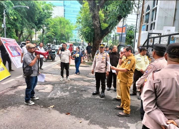 Hal itu disampaikan Koordinator Aksi, Antoni Gultom saat berorasi di depan Gedung DPRD Sumut, Senin (6/4) pagi. “Kami Forum Aktivis Peduli Keadilan Sumatera Utara meminta kepada ketua DPRD Sumut mendesak Kapolrestabes Medan dan Kasat Reskrim serius menangani kasus ini dan segera menangkap tiga tersangka lainnya yakni, LS, WOP dan SP yang statusnya sudah di DPO Polrestabes Medan. Kami percaya bila Satreskrim Polrestabes Medan serius memburu para DPO, hal ini bukan hal yang sulit,”ungkapnya.