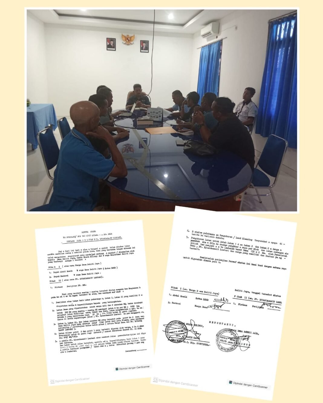 Perwakilan warga yang tergabung dalam Forum Masyarakat Penyelamat Lahan dipimpin Ketua Forum Purwanto. Pemerintah Desa Beliti Jaya juga terlibat, termasuk Kepala Desa H. Sumito yang saat kesepakatan dibuat menjabat sebagai kepala desa dan kini kembali menjabat.