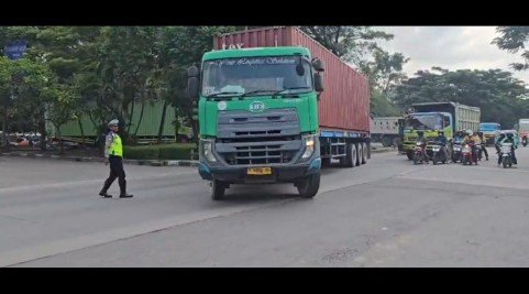 “Berdasarkan SKB Tiga Menteri, kendaraan angkutan barang sumbu tiga atau lebih dilarang melintas di jalan tol maupun jalur arteri mulai tanggal 13 hingga 29 Maret 2026. Namun demikian, terdapat beberapa pengecualian bagi kendaraan yang mengangkut BBM atau migas, sembako, pupuk, pakan ternak, serta perlengkapan penanganan bencana alam,” jelas AKBP Yunaldi.