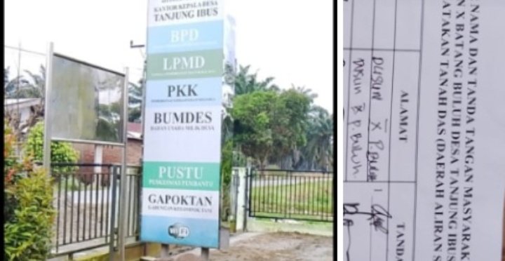 Sebelumnya, beberapa warga Desa Tanjung Ibus meneken surat tentang benar itu adalah benar Tanah DAS membuat pernyataan menolak penjualan Tanah DAS oleh Kades KS pada 9 April 2026. (Tim/Suyanto)